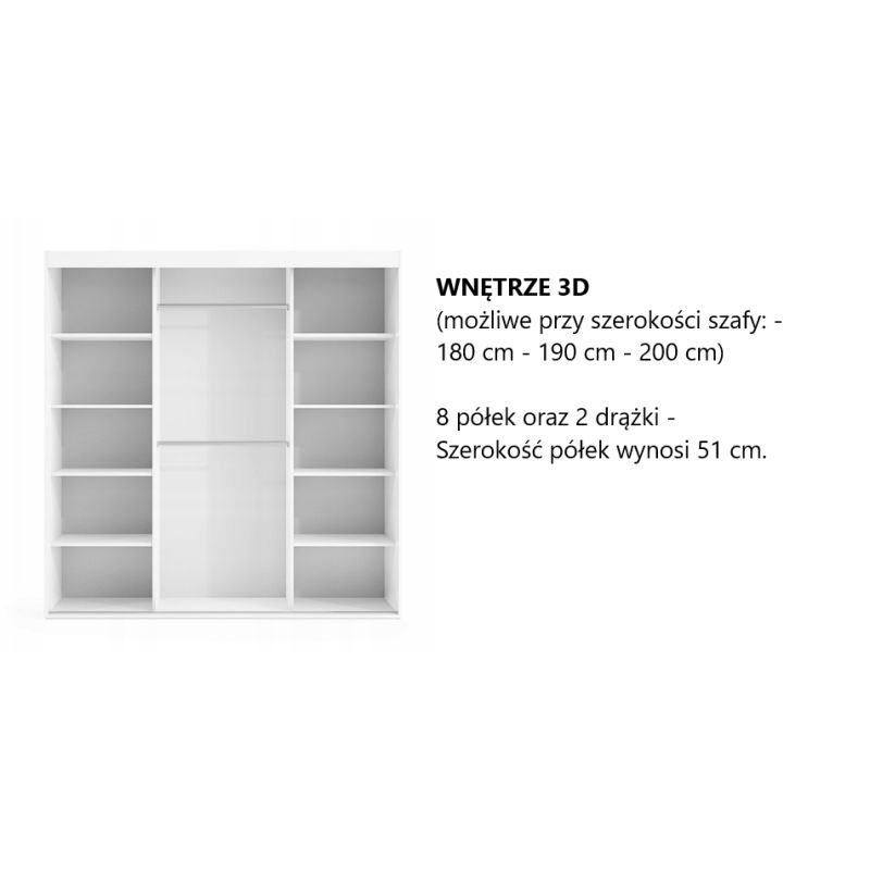 WNĘTRZE 3D MAXSZEROKOŚĆ PÓŁKI 51 CM | WNĘTRZE 2D+ SMARTSZERKOŚĆ PÓŁKI 2X 40 CM |